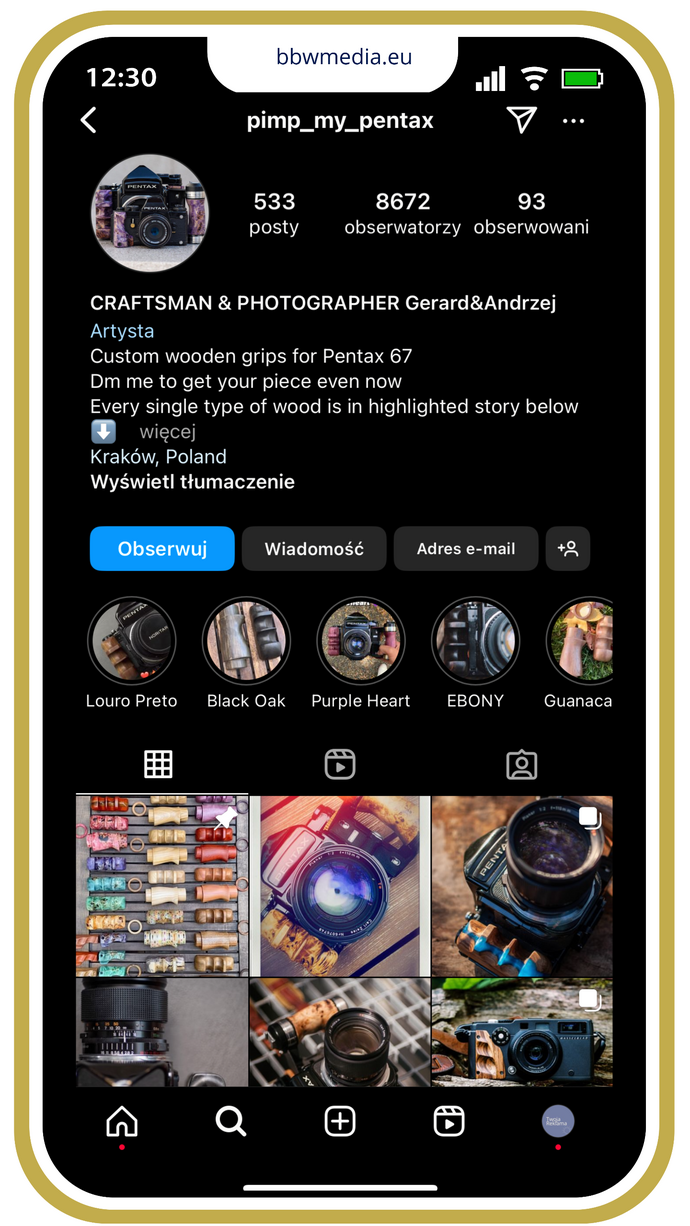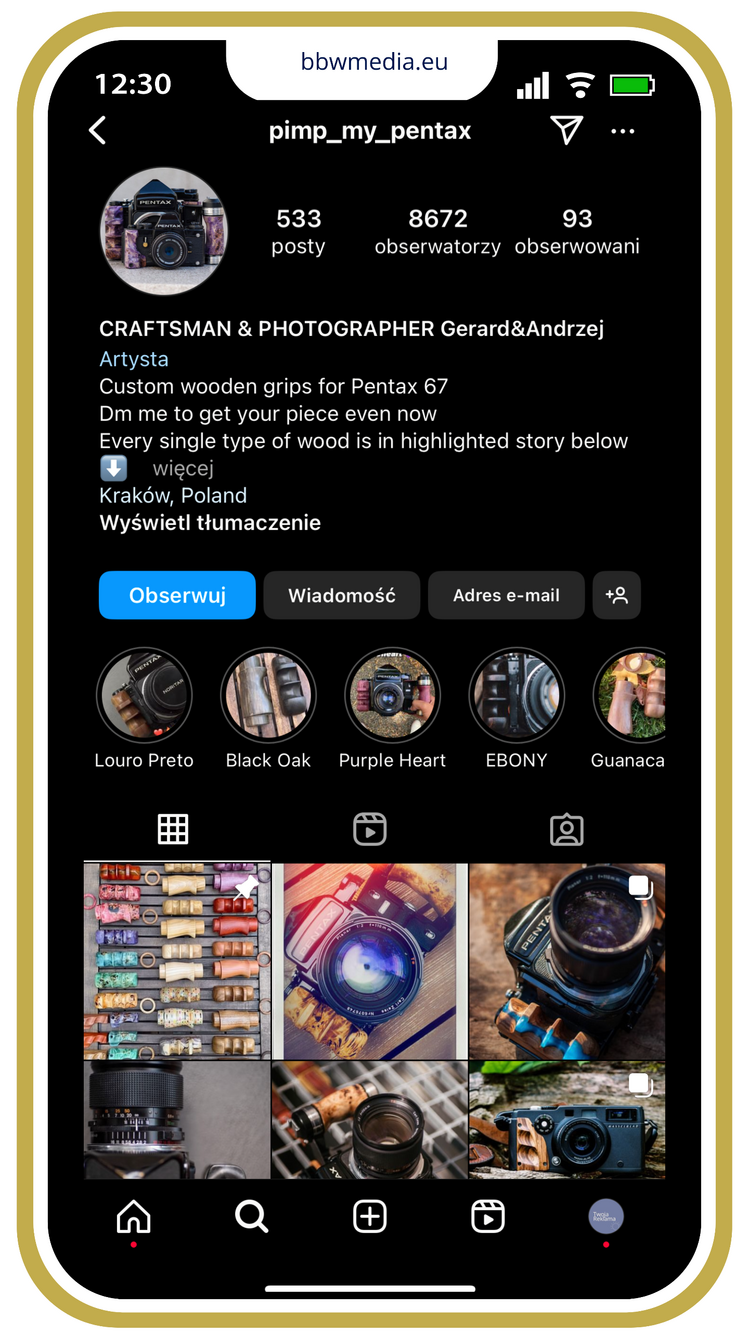 Organic social media optimization for a company selling Wooden Pentax Grips